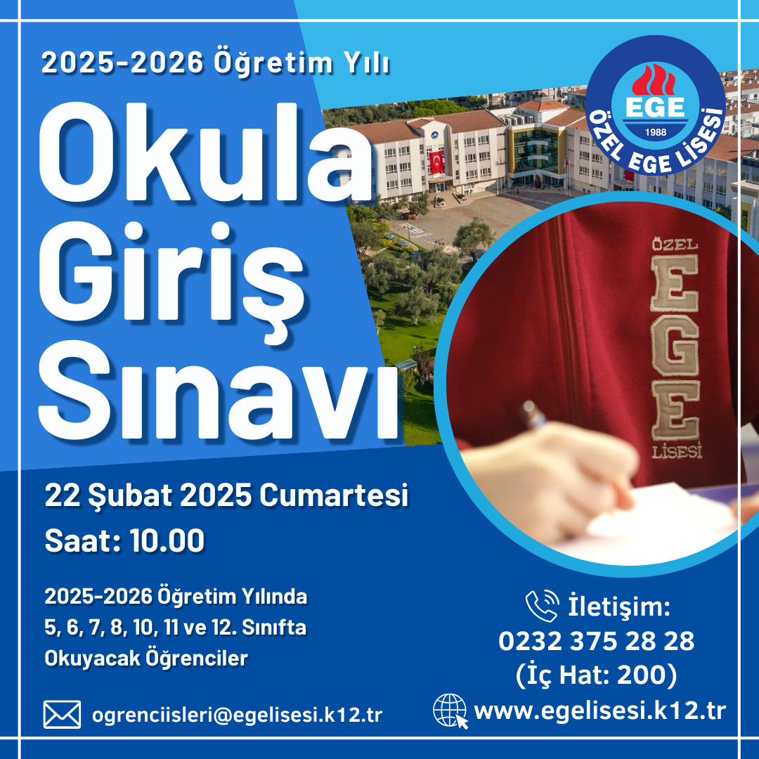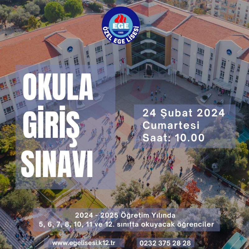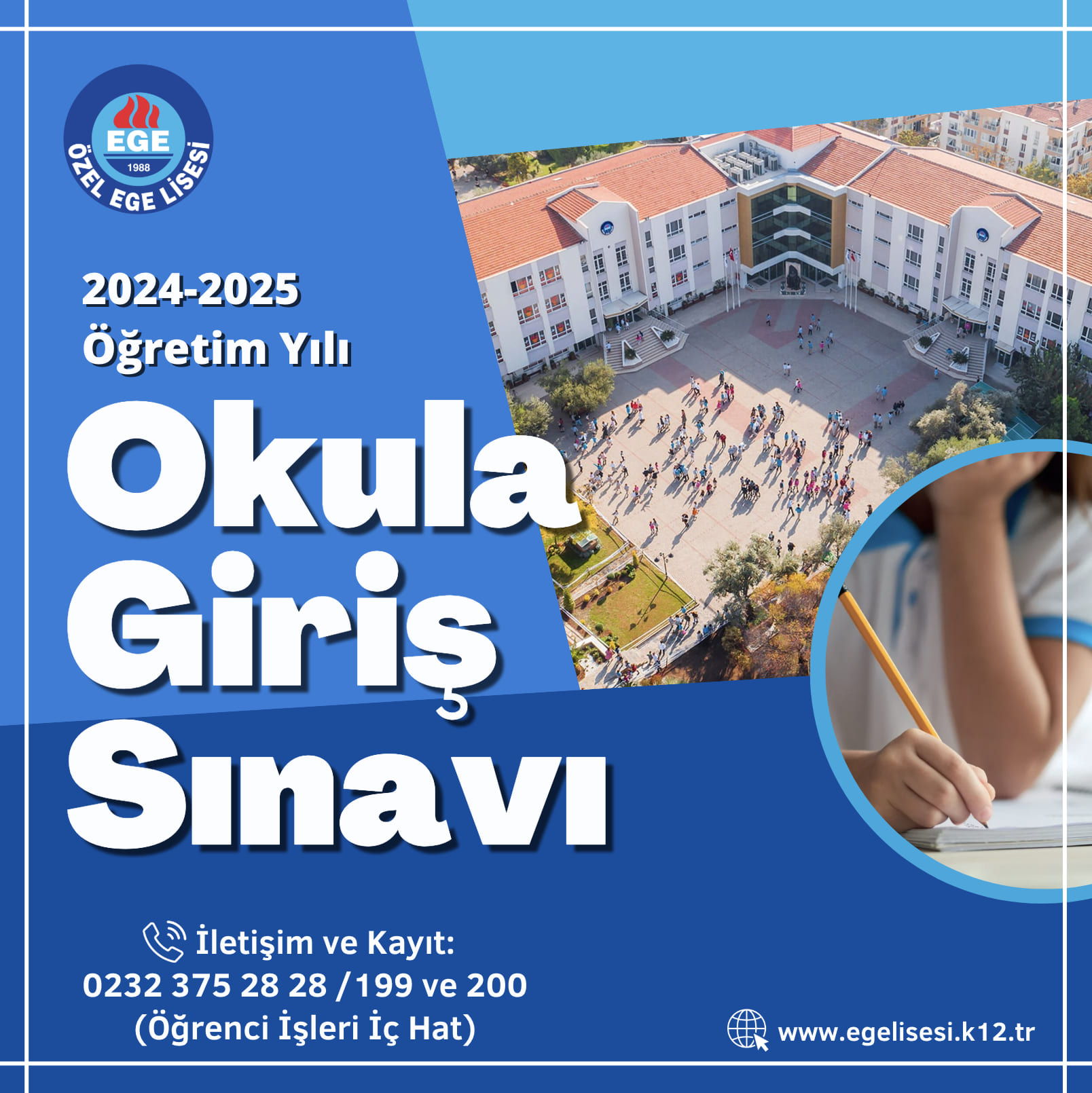 2024-2025 Öğretim Yılında Özel Egeli olmak isteyen ortaokul ve lise öğrencileri için Okula Giriş Sınavı devam etmektedir.Kayıt oluşturmak ve detaylı bilgi edinmek için &Oum