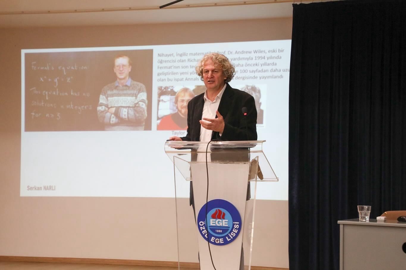 Özel Ege Lisesi Matematik Bölümü tarafından planlanan salon dersimizde bu haftaki konuğumuz Dokuz Eylül Üniversitesi Buca Eğitim Fakültesi - Matematik ve Fen Bilimleri Anabilim Dalı kapsamında çalışmalarını sürdüren Prof. Dr. Serkan Narlı oldu.