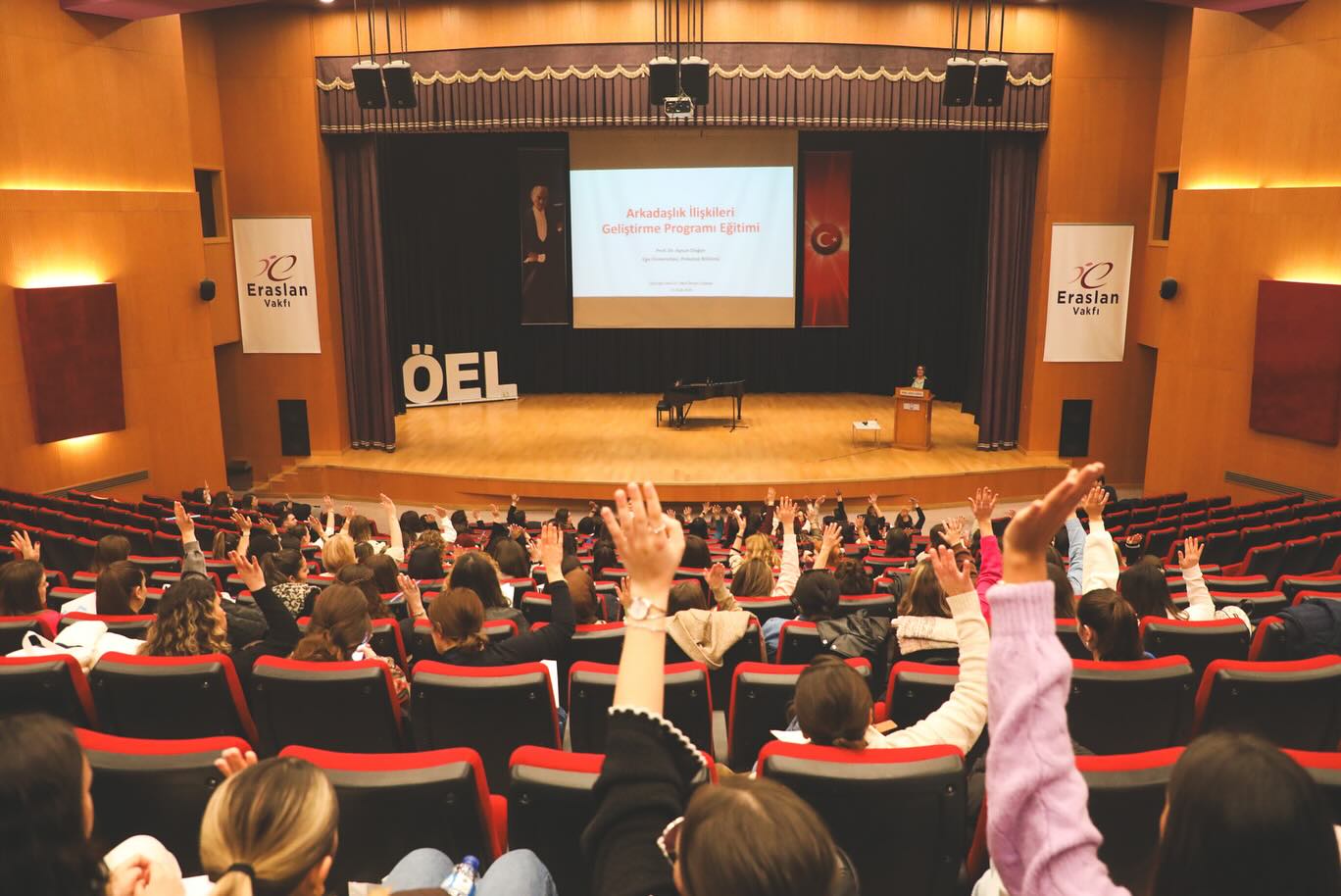 Özel Ege Lisesi Kurucu Temsilcisi Yansı Eraslan, 2024-2025 öğretim yılının son salon dersinde Özel Ege Lisesi öğrencileriyle bir araya geldi. Eraslan, gençlerle birlikte olmaktan her zaman memnuniyet duyduğunu belirterek ayrımcı dil içermeyen,