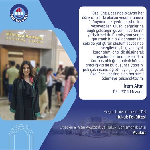 Ortaokul ve liseyi Özel Ege Lisesi'nde okudum. 2004 yılında ise Özel Ege Lisesi'nden mezun oldum. Mezuniyetimin akabinde Sabancı Üniversitesi Doğa Bilimleri ve Mühendislik Fakültesi'ne burslu olarak girdim. Amacım makine mühendisi olup aile şirketimiz devamını oku..